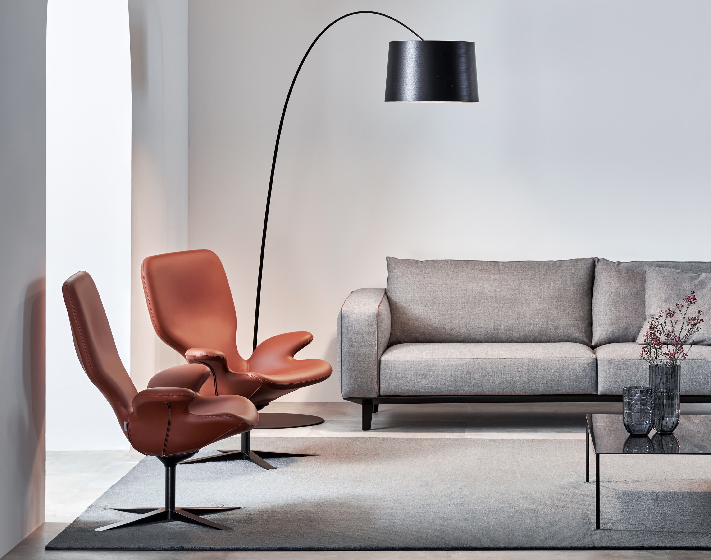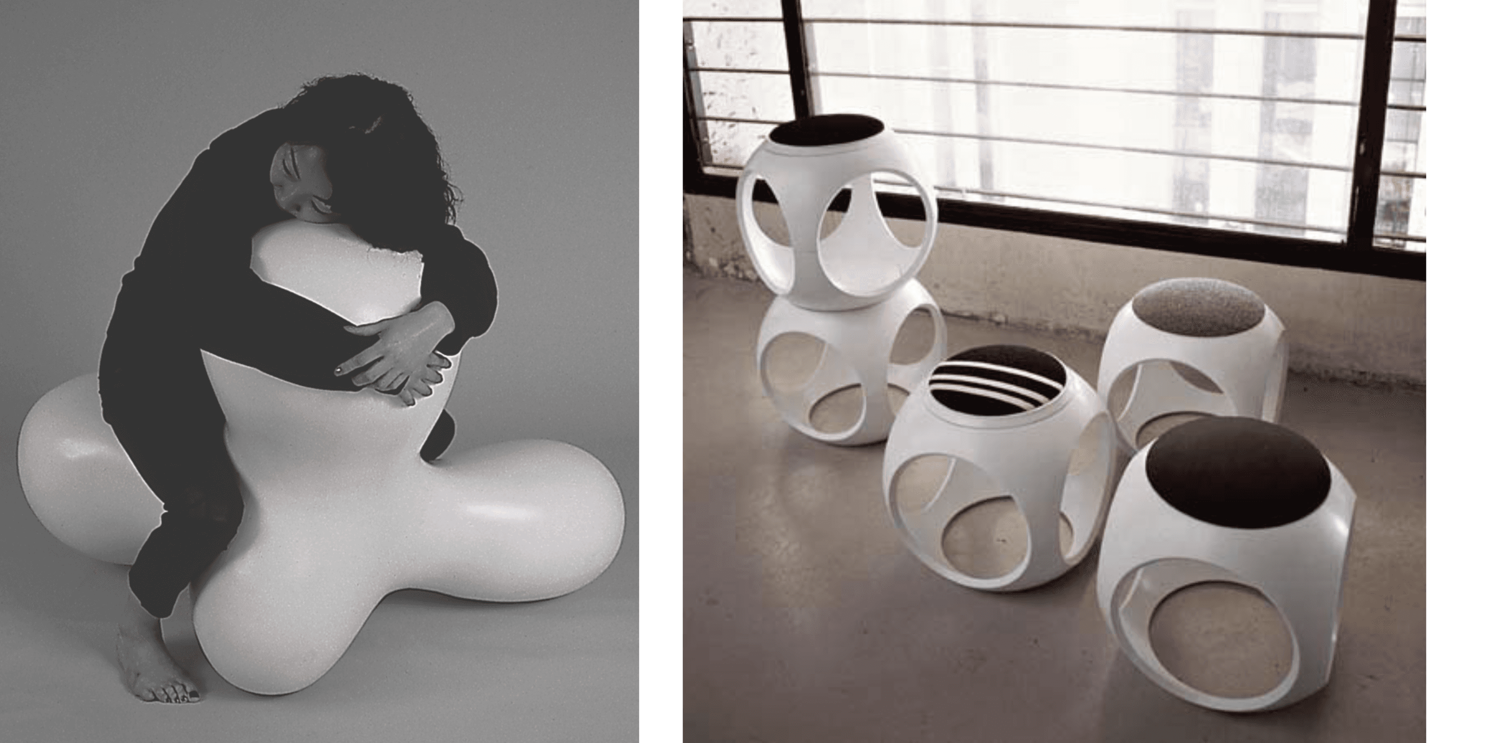 Robinson’s Play Orbiter soft lounger (left) and Oblio poufs for Moroso (right).