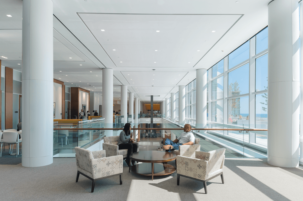 Fast forward to two years ago as we embarked on the North Building Modernization Project. We retained these foundational elements while introducing new, supportive spaces and sustainable commitments to elevate the design further.