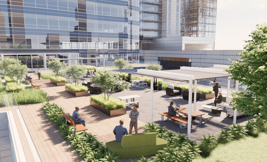 Our relationship-focused culture guides design decisions that promote collaboration, growth, and well-being. The Tower and Commons introduced immersive gardens, a learning institute, a two-story workforce café, and work floor collaboration areas with stunning city and lake views. Building on this momentum, the modernized North Building will feature a unique amenity: an upscale bar and restaurant open to the public. New common spaces will support events and training, while a large workforce collaboration area will open to a rooftop terrace, encouraging connection with nature.