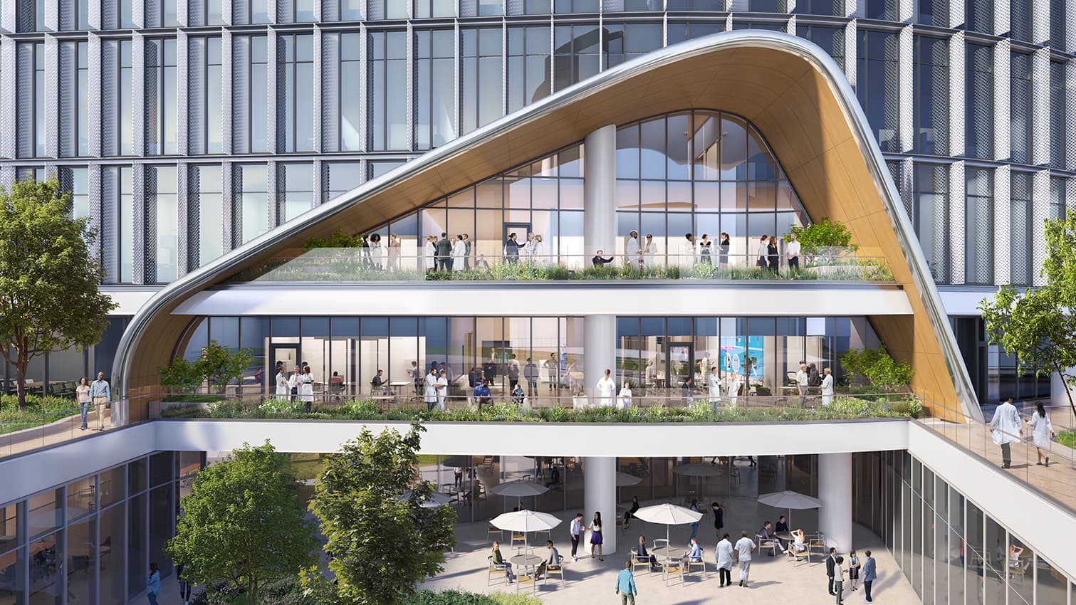 Courtyard and terraces at the new Lillie and Roy Cullen Health Sciences Tower at Baylor College of Medicine. (Design by SLAM, Rendering by Arslonga)