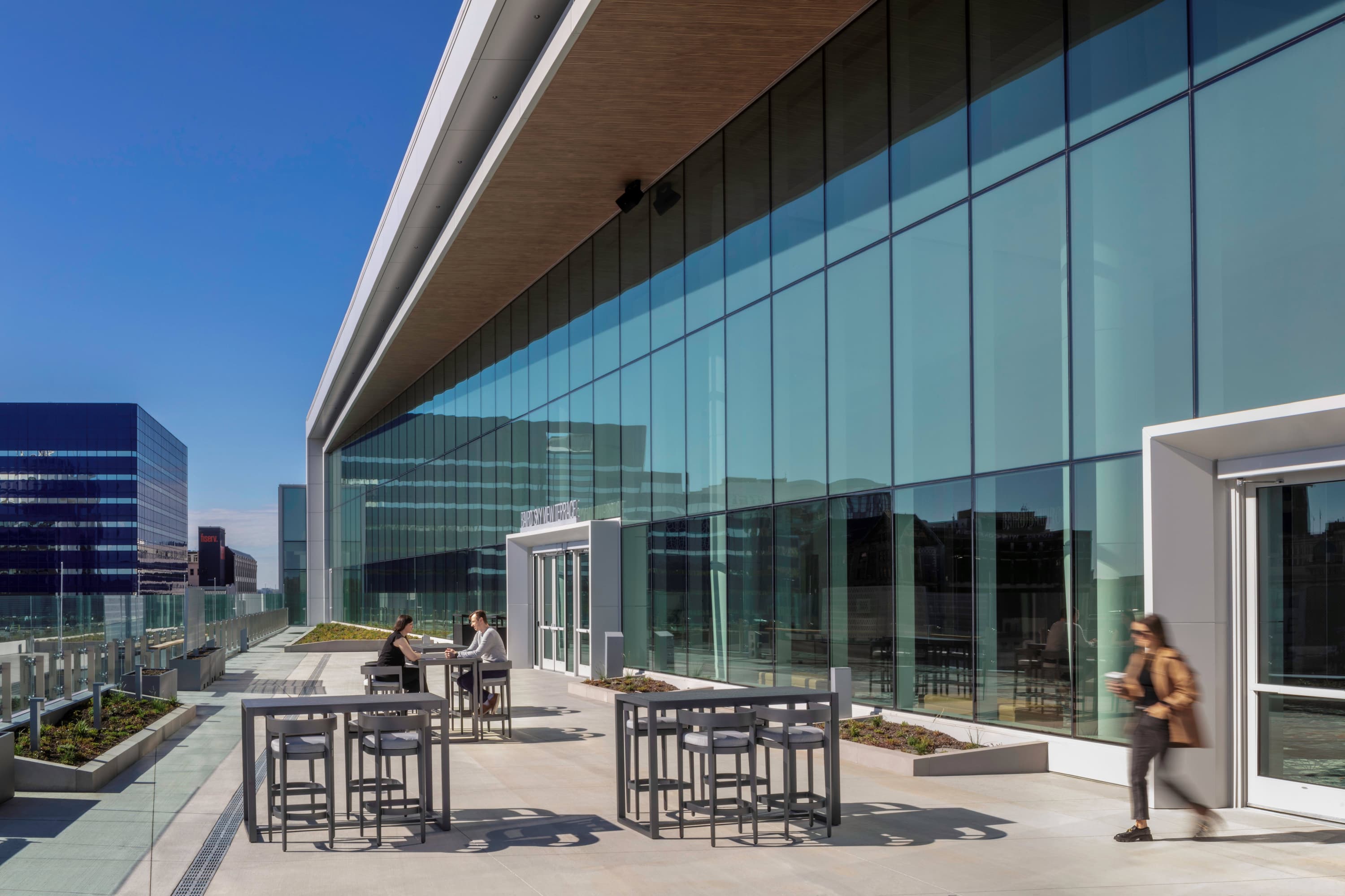 A quick step outside to grab a bite, recharge, or catch up with a colleague can offer a critical mental reset between meetings and exhibitions. At the Baird Center in Wisconsin, the Skyview Terrace delivers a stunning panoramic view of the city, creating a memorable and authentic connection between attendees and their setting. The Javits Center in New York City offers another strong example with its expansive green roof, featuring open-air gathering spaces that blend nature with urban energy.