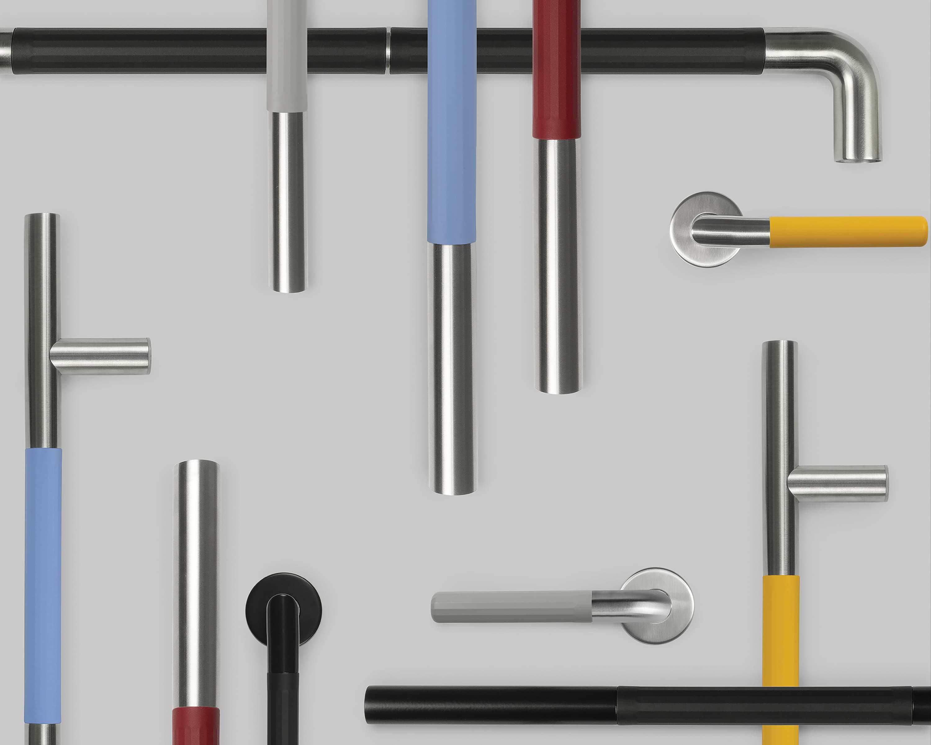 These sleek, modern door handles are made with steel and ECONYLⓇ nylon, and are designed to be easily dismantled and recycled at end of use. The grips come in different colors and textures in order to adapt to varying tactile preferences. They are beautiful, functional and thoughtfully designed.