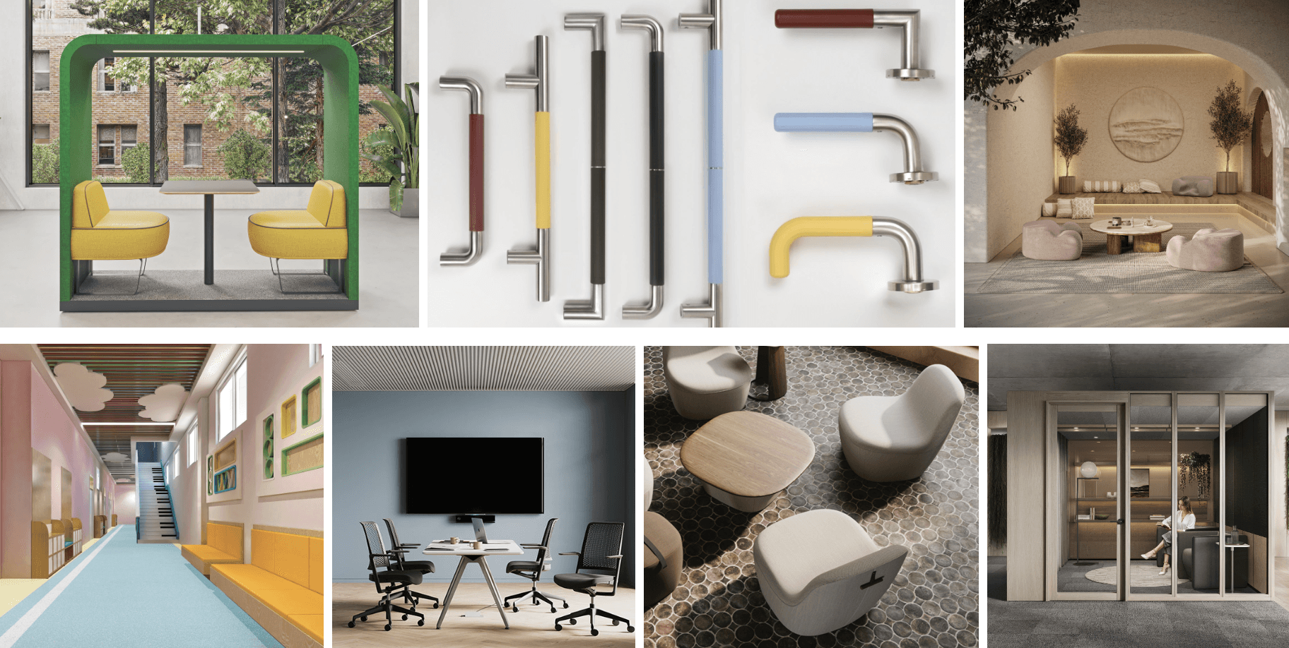 Silen Bridges Mobile by Silen, TOCCO Collection by pba & Aquafil, Oyster Wellness Seat by Oyster Wellness, MedinPure by Armstrong Flooring, Foryu by Keilhauer, Liaison by DARRAN Furniture, Focus Quiet Rooms by Schiavello