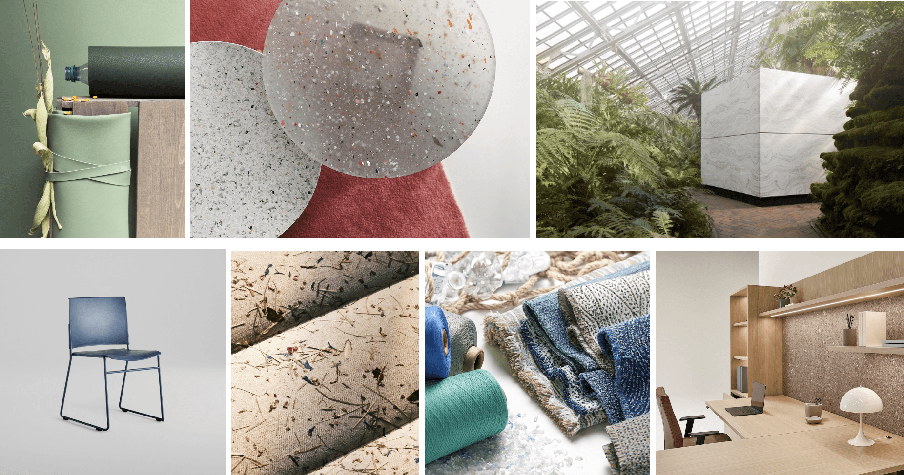 Volar Bio by Ultrafabrics, Tinnef by Scandinavian Spaces, Stone Textures by Turf, X50 by Davis Furniture, Bloom by Slalom, Sea Change by C.F. Stinson, and Vox Tambour by Nienkamper